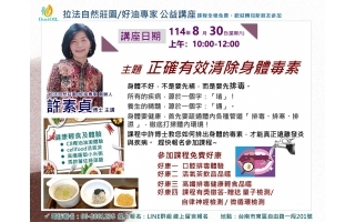 正確有效清除身體毒素 身體要健康,首先要疏通體內各種管道「 排毒、排寒、排濕 」,徹底打掃體內環境! 許素貞博士主講