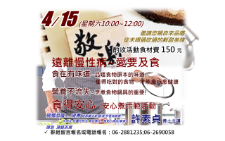 食在有味道~品嚐食物原本的味道, 懂得吃對的食物,才能愈吃愈健康 營養不流失~烹煮食物鍋具的重要! 許素貞 博士主講