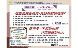 吃進去的蛋白質-真的有被吸收嗎? 石敬淵 總經理 主講 吃得多~不如消化好 打造順暢消化力 Bella 健康管理師 主講