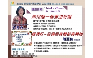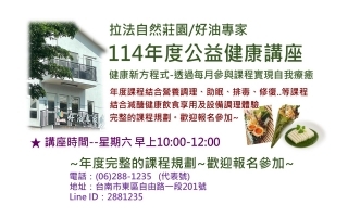 114年度拉法自然莊園/好油專家 公益講座 (固定每月1次)