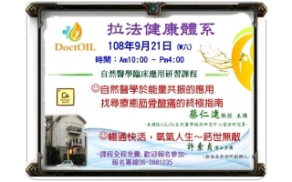 1.自然醫學於能量共振的應用 找尋療癒筋骨酸痛的終極指南-蔡仁達教授 2.暢通快活,氧氣人生~鈣世無敵-許素貞博士
