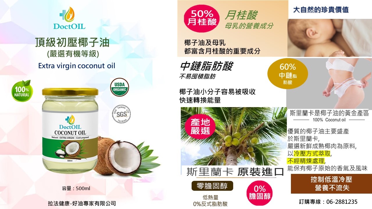 品 名:特級冷壓初榨椰子油(嚴選有機等級) 成 分:椰子油 內 容 量:500ml/瓶 保存期限:二年 產 地:斯里蘭卡 保存方式:放置陰涼乾燥處,避免高溫、陽光直射,開封後請儘 速食用完畢並密封保存以防受潮。 食用方法:每次15ml。可當料理食用油、烘焙糕點使用。 **純素可食用** ※退換貨須知:7天鑑賞(猶豫)期之權利【鑑賞(猶豫)期非試用期】,辦理退貨商品必須是全新狀態且包裝完整,否則將會影響退貨權限。