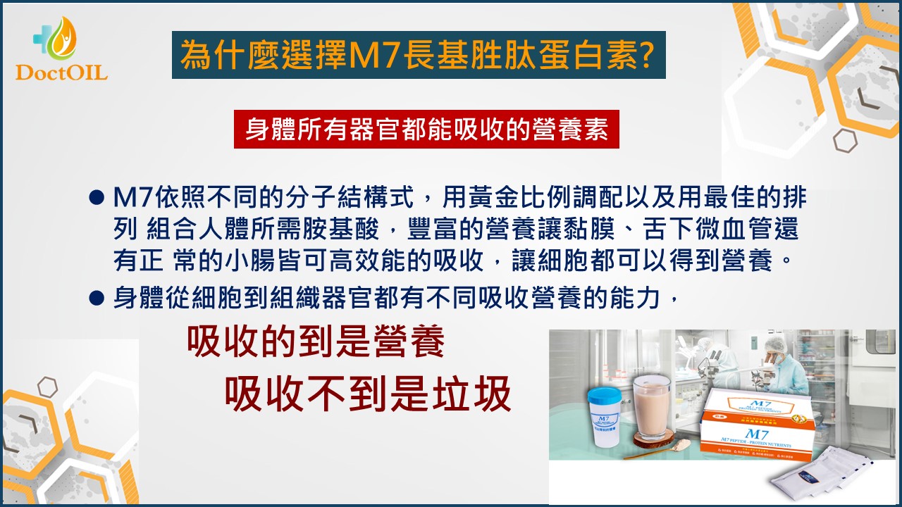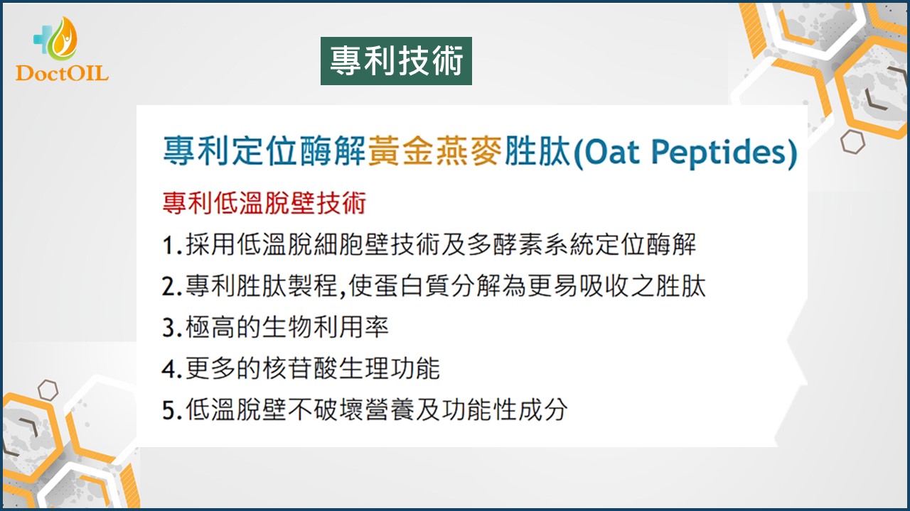 分離大豆蛋白、紐西蘭鮮奶粉、綜合草本胜肽〔大豆胜肽、燕麥胜肽、秋葵萃取物(含胜肽)、苦瓜萃取物(含胜肽)〕、豌豆蛋白、乳清胜肽、支鏈胺基酸(白胺酸、異白胺酸、纈胺酸)、精胺酸、紐西蘭牛奶鈣、關華豆膠(屬水溶性膳食纖維)、天然香草香料、麩醯胺酸